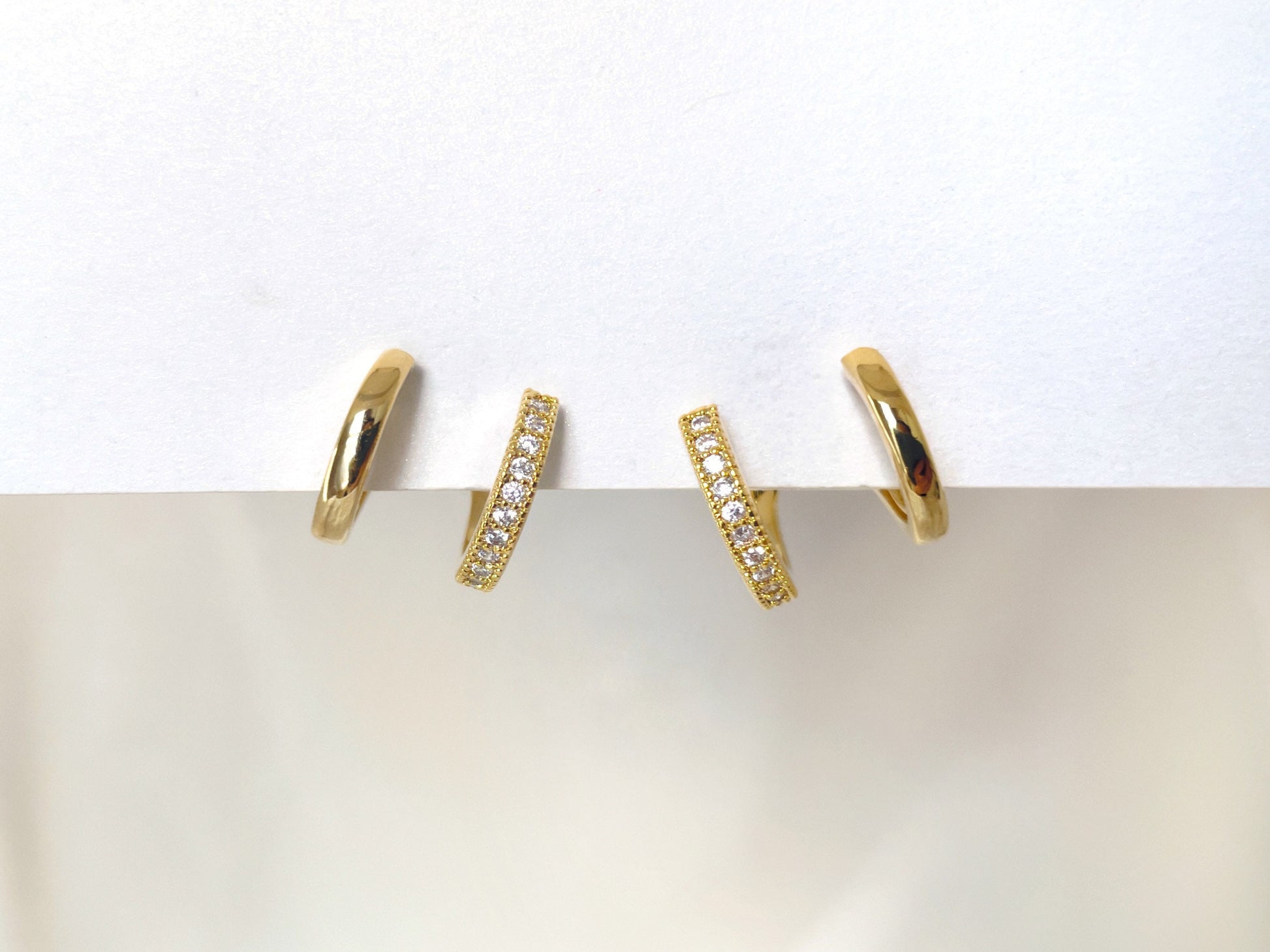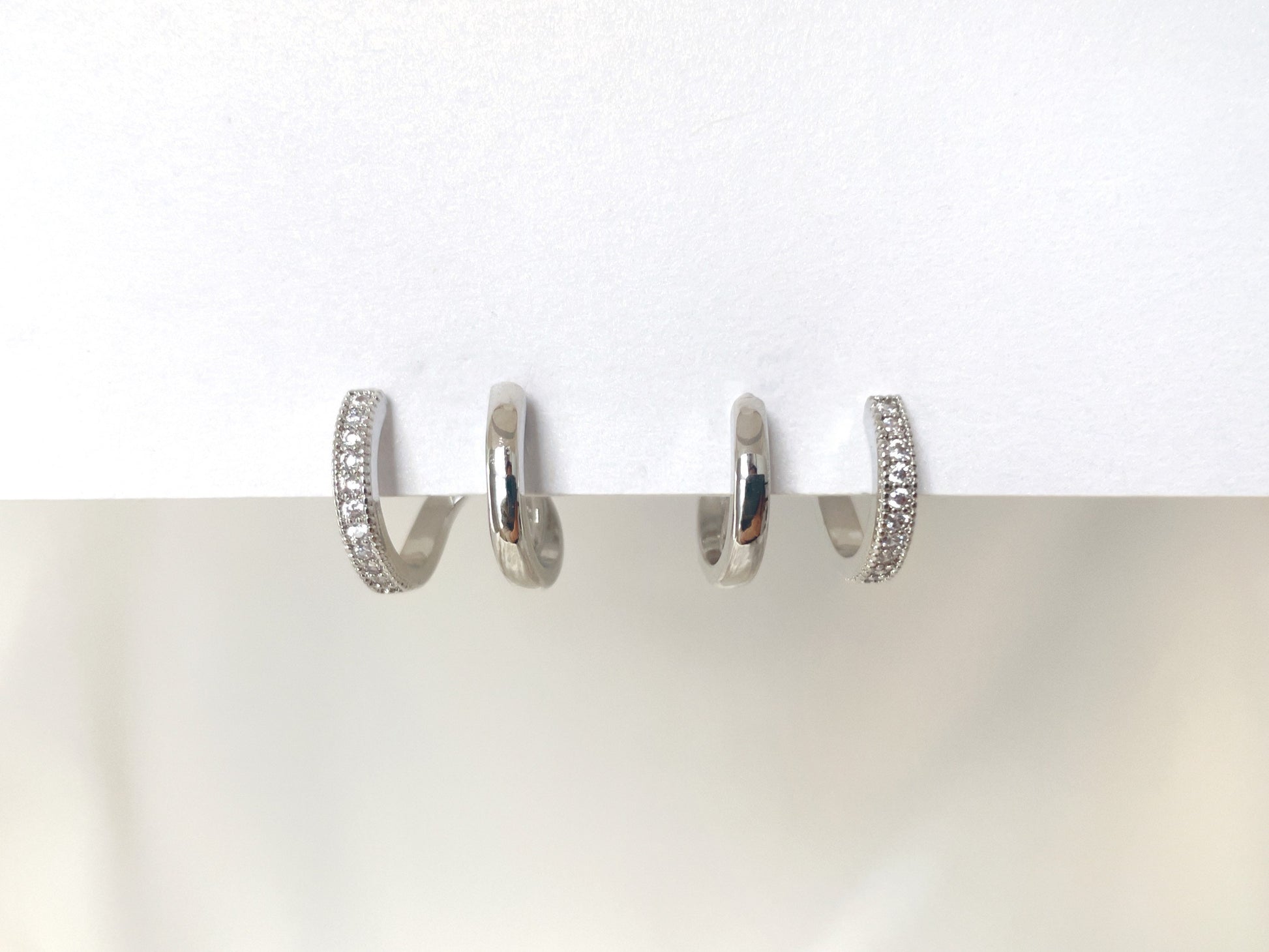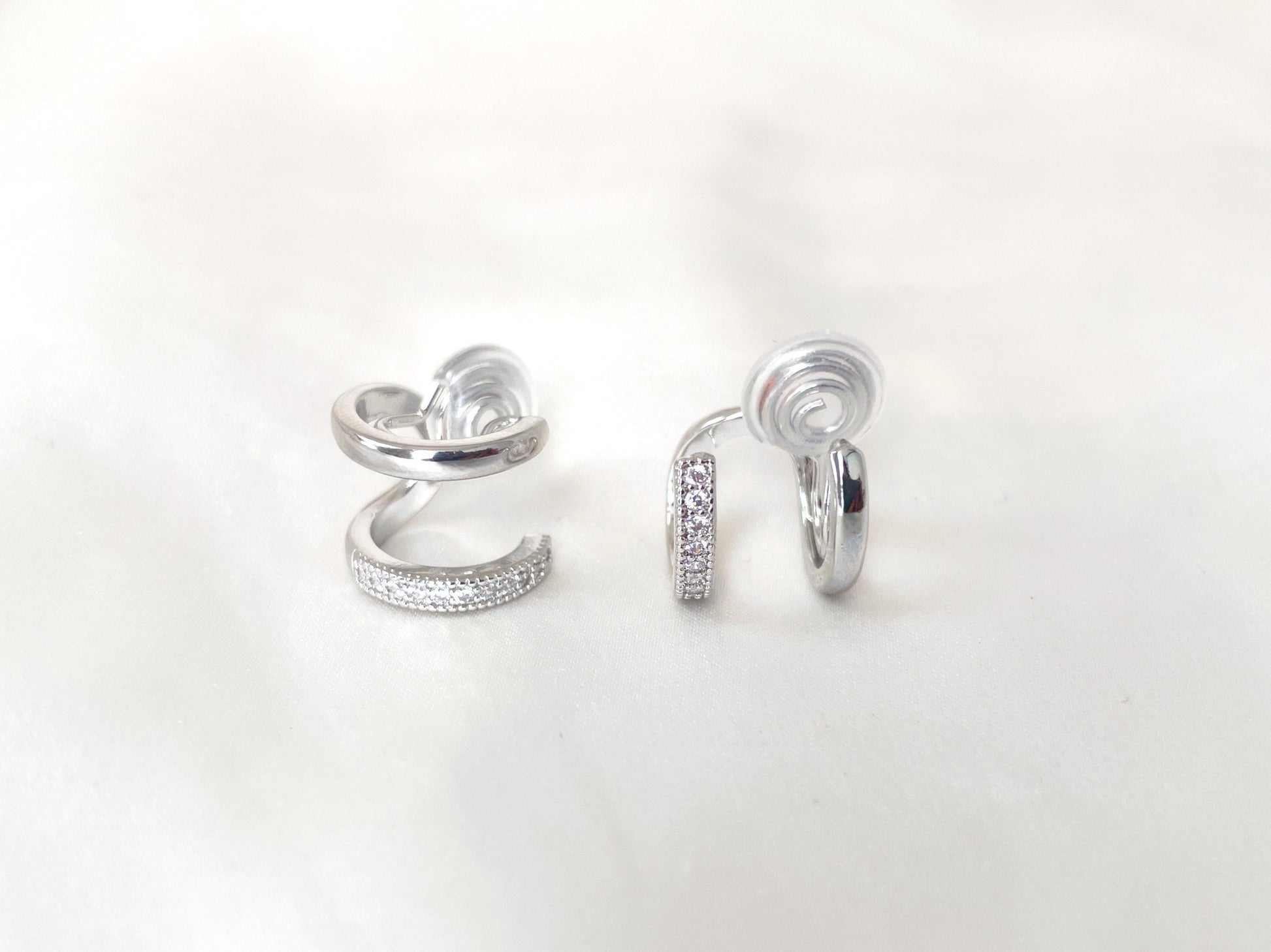 Double Huggie Hoop CZ Gold/Silver Clip on Earrings