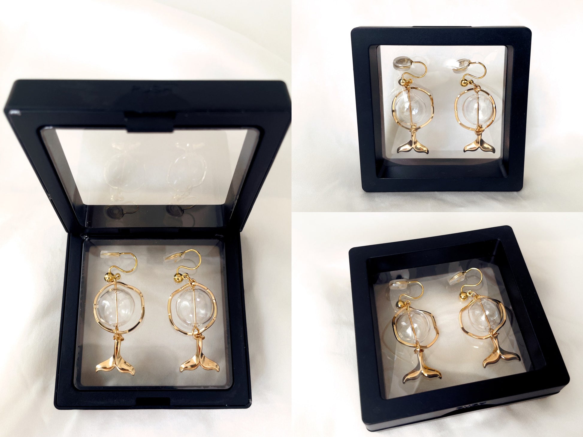 Unique bauble and whale/mermaid tail clip on earrings, beautiful and sweet!