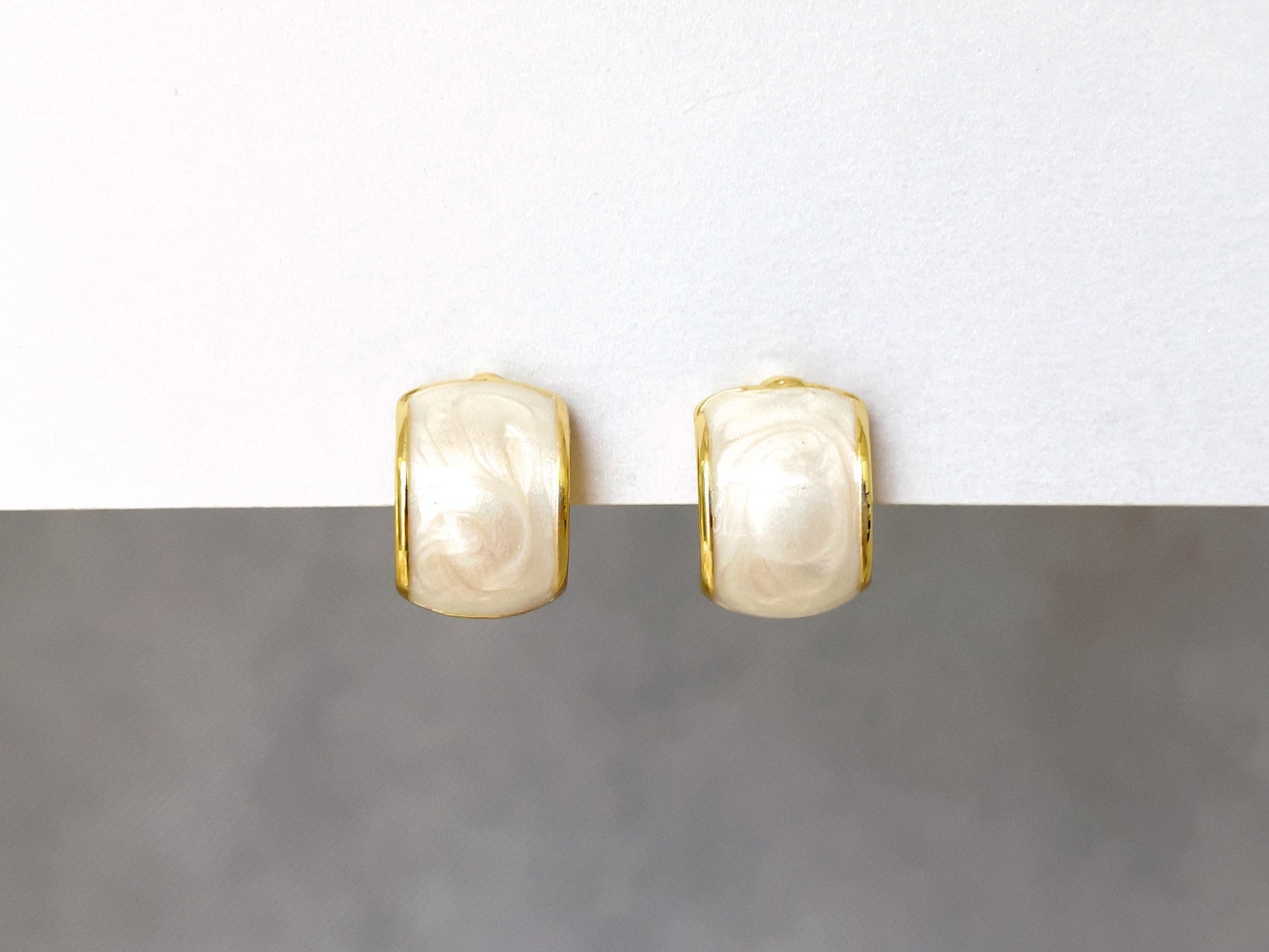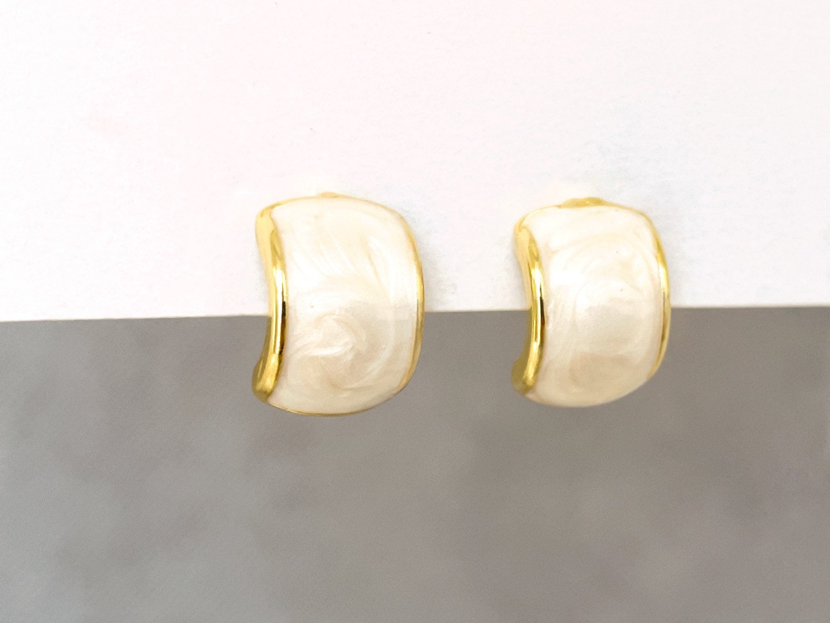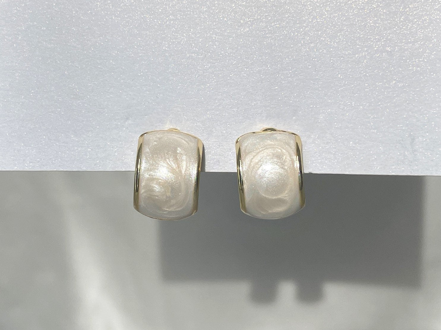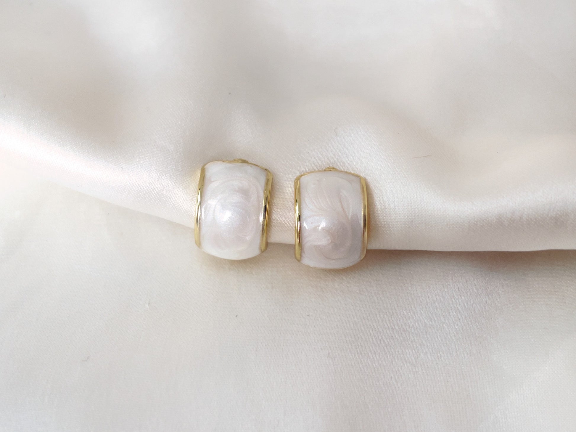 A pair of white half curve clip on earrings, simple but elegant, the perfect addition to everyday style.