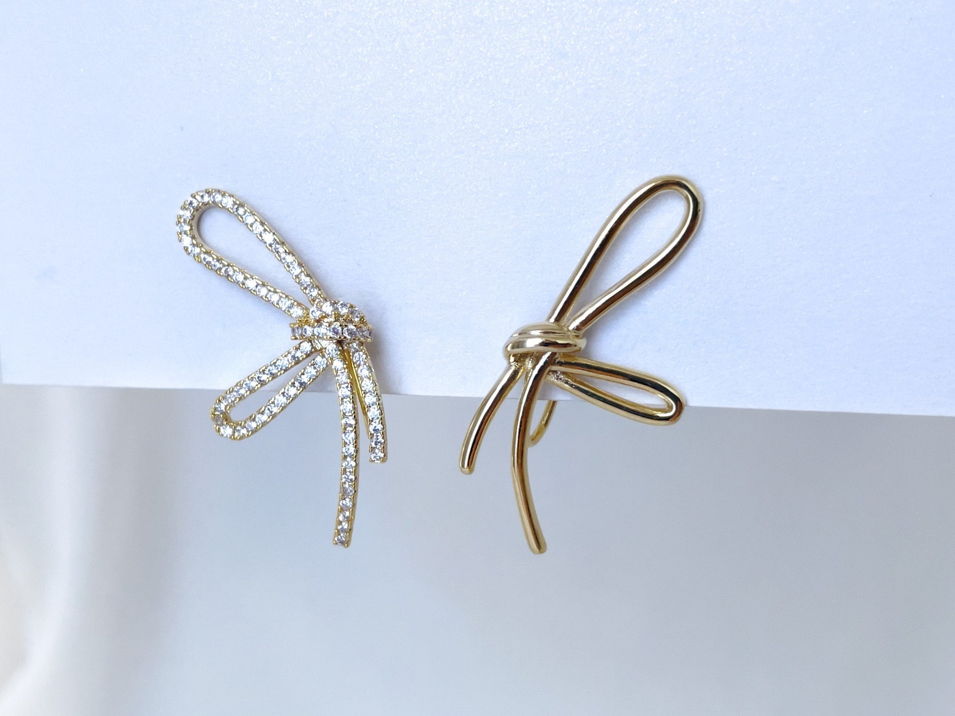 Mismatched CZ gold bowknot clip on earrings, sweet and sparkly!