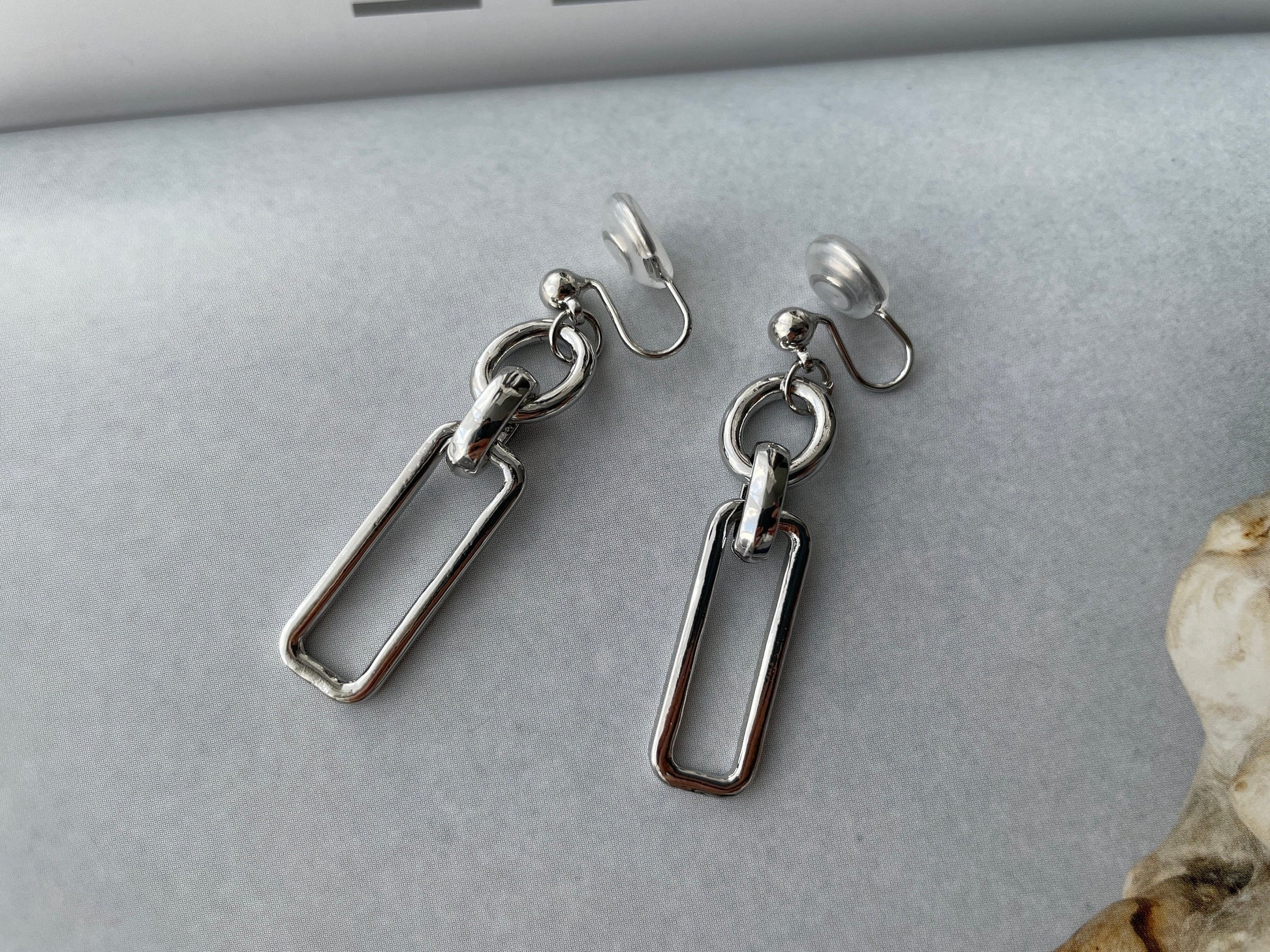 A pair of minimalist silver chunky chain clip on earrings, designed to make a bold and chic statement. Super trendy and stylish!