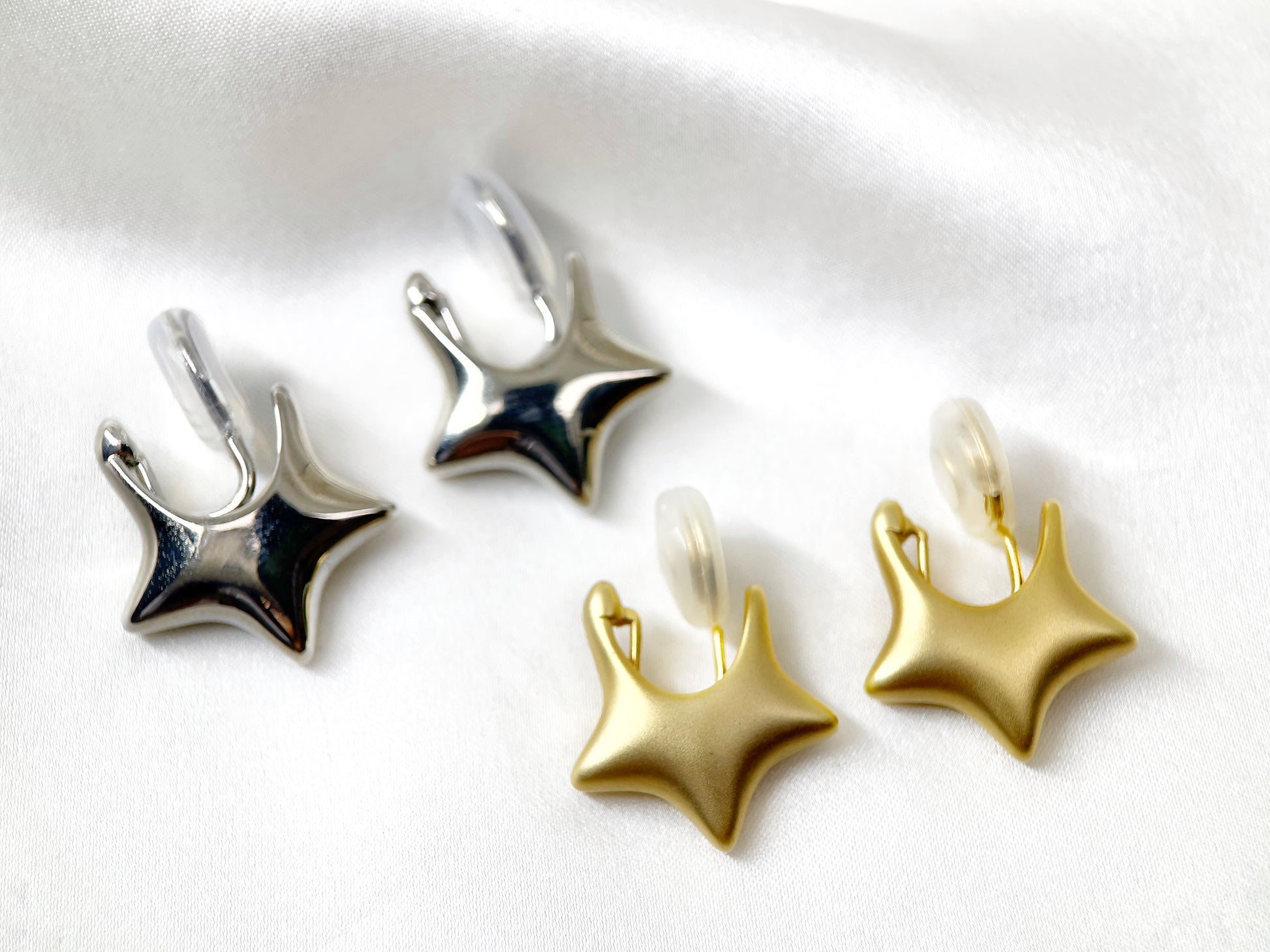 Illuminate your style with our silver star huggie clip on earrings, these charming earrings designed with invisible clamps for discreet and comfortable wear all day long.