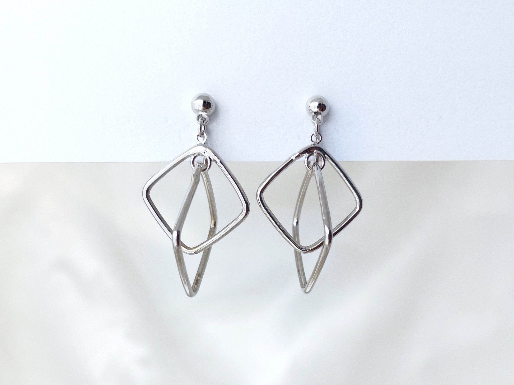 A pair of stylish silver square hoops clip on earrings, featuring a minimalist geometric design, effortless chic!