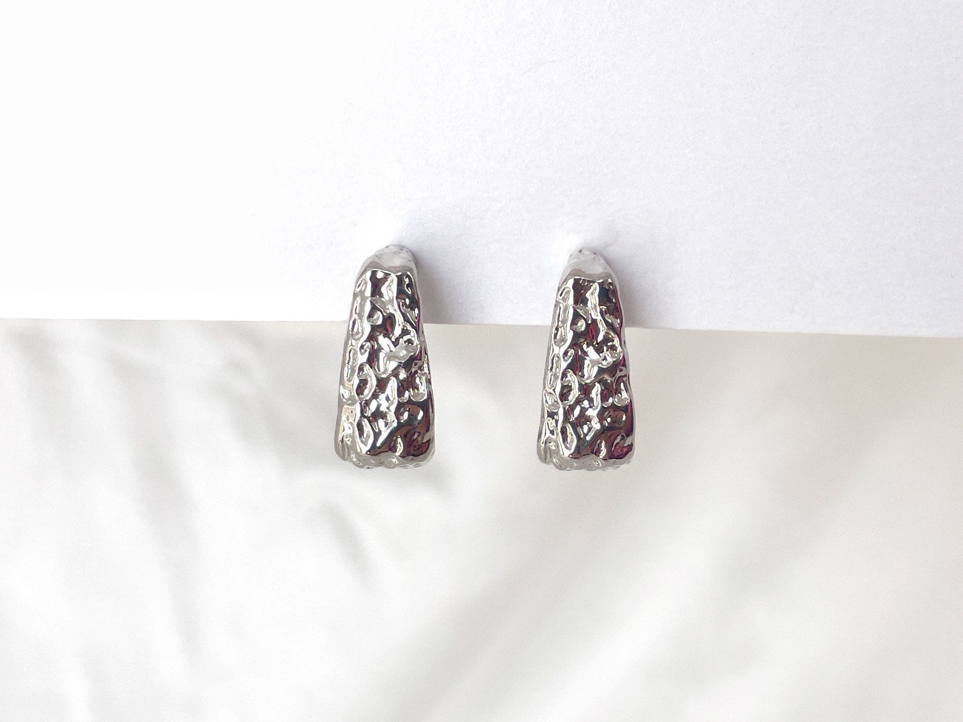 Textured Chunky Sliver Square Hoop Clip on Earrings