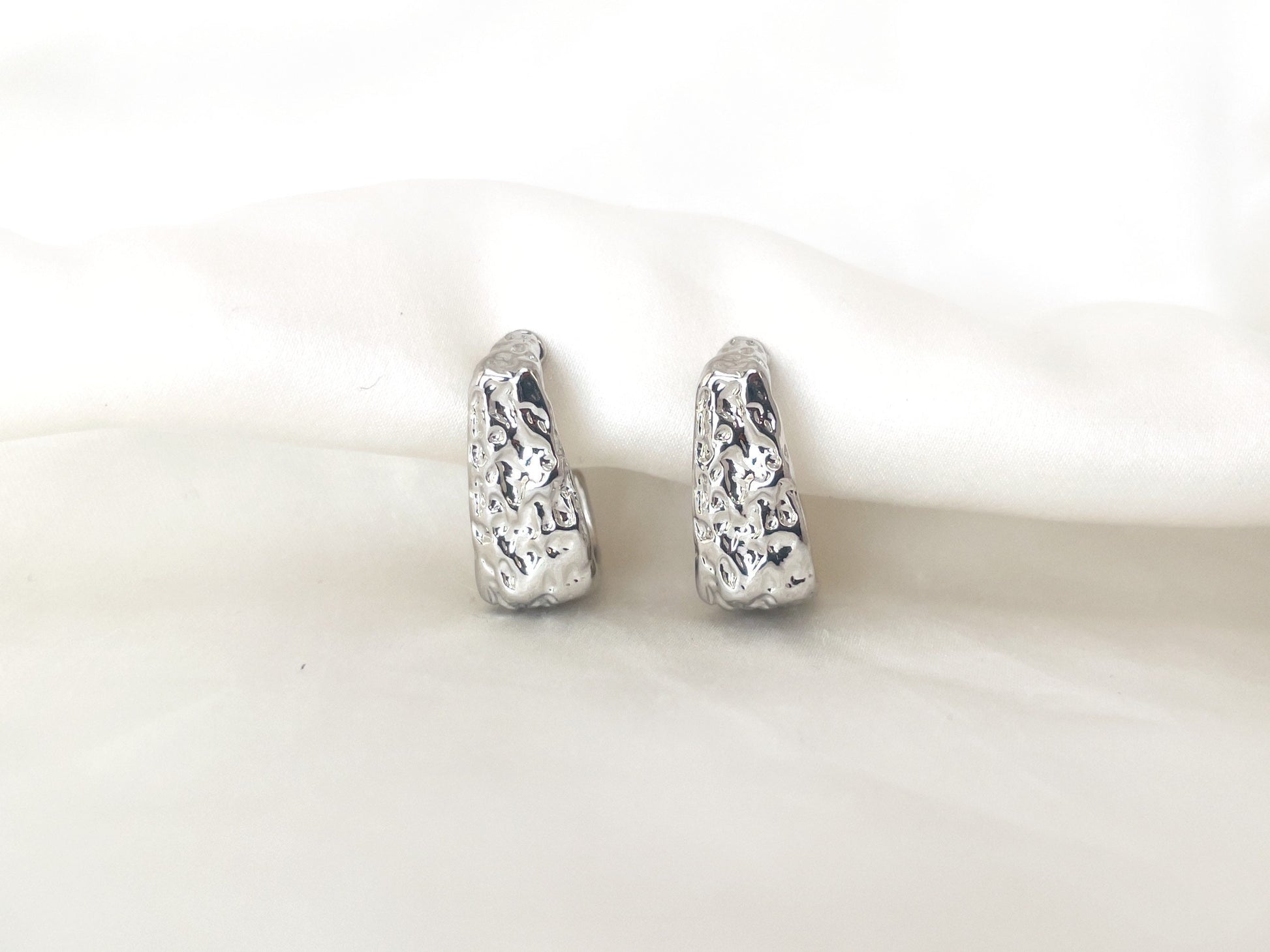 A pair of unique hammered silver open hoop clip on earrings, be bold!